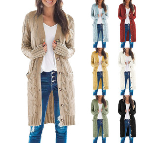 毛毛雨跨境针织衫长款纽扣开衫亚马逊2022秋冬新款...