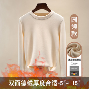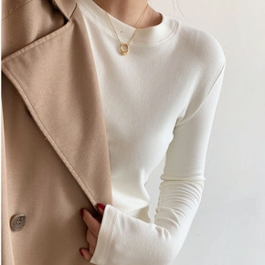 德绒打底衫女春秋内搭磨毛白色圆领长袖t恤2021早...