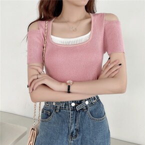 韩国东大门夏季新款短袖t恤女装修身弹力紧身打底衫上...