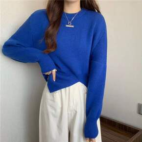 克莱因蓝新款毛衣小香风收腰开叉长袖套头针织衫女秋冬...