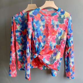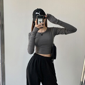 2022秋装开叉纯色长袖T恤女时尚打底衫韩版潮学生...