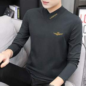 男士长袖t恤春秋季修身潮流打底衫男士休闲百搭v领莫...