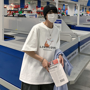短袖t恤男士2021夏季新款男生潮牌半袖T恤纯棉潮...