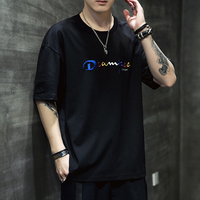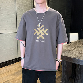 青少年男士短袖t恤圆领宽松衣服汗衫T恤男色简约半袖...