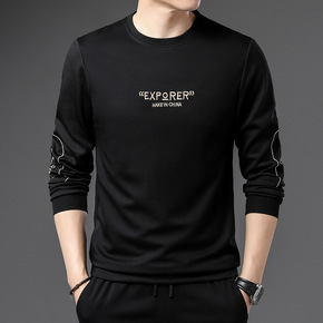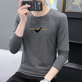 2021秋季新款男士长袖t恤青年韩版100棉圆领体...