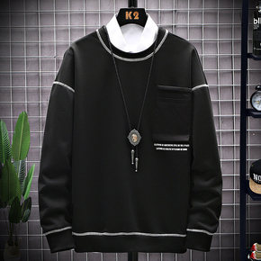 春秋圆领卫衣男潮宽松纯棉春秋季外套男打底衫长袖t恤...