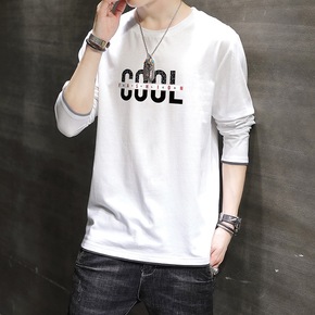 男士长袖t恤春秋季韩版潮青少年圆领打底衫新款时尚潮...