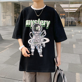 2606 夏季新款街潮卡通图短袖t恤男士透气绣花T...