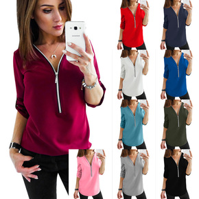 2020ebay速卖通wish爆款 V领长袖可挽袖...