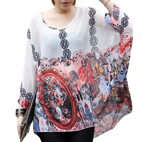 4001或4008时尚阁大码女装波西米亚雪纺衫海边...