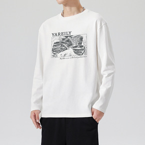 纯棉长袖t恤2022男士潮牌春秋季男装休闲修身上衣...