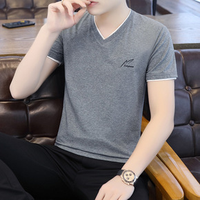 夏季短袖t恤男士V领打底衫时尚潮流潮牌薄款透气吸汗...