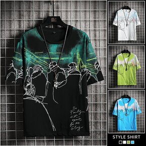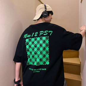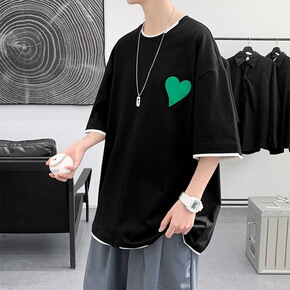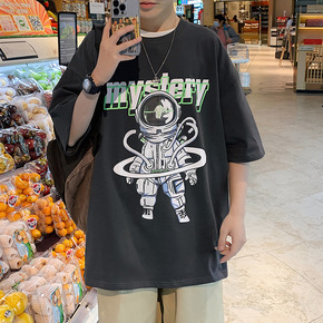 夏季休闲韩版日系街潮男士T恤男五分袖t恤宽松型青少...