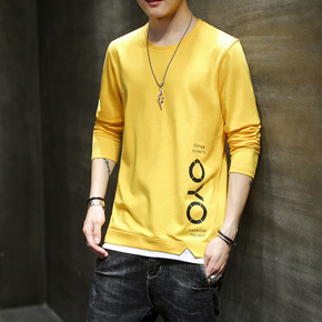 长袖t恤男春秋潮牌潮流ins宽松假两件卫衣上衣体恤...
