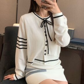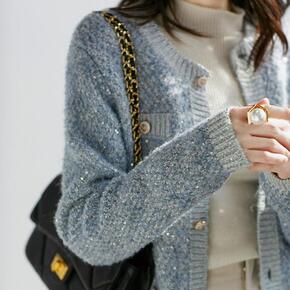 亮片小香风毛衣女开衫2021秋冬季新款宽松圆领长袖...
