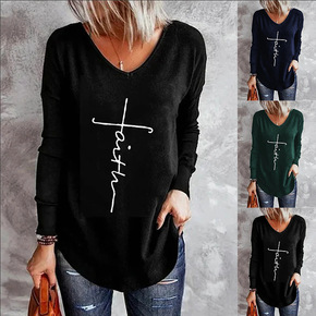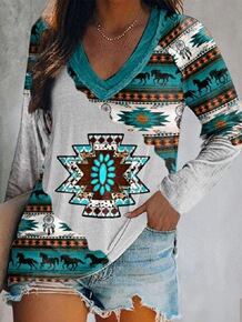 2021外贸跨境女装 时尚宽松圆领 数码印花西部V...