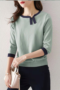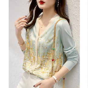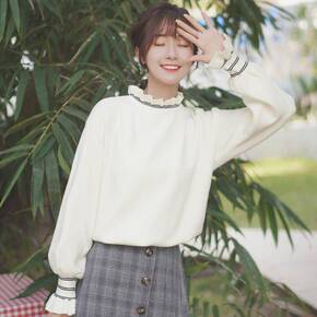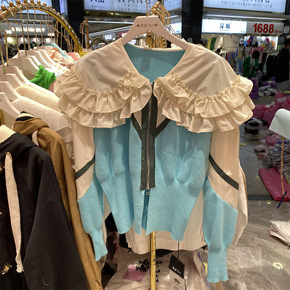 针织衫女外套拼接衬衫娃娃领长袖宽松欧货2022春季...