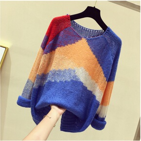韩版宽松慵懒风毛衣镂空上衣女薄套头长袖针织衫...