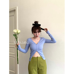 ovinsyang 甜美打底衫女性感V领露脐设计感...