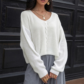 2021秋冬新款外贸女装亚马逊爆款性感纯色V领露肩...