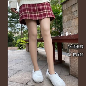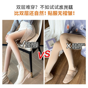 秋冬加绒加厚高腰收腹一体无缝打底裤透肤薄款连袜真透...