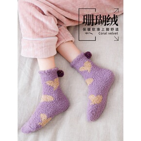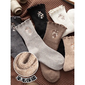 一件代发花边厚袜子女秋冬羊毛袜中筒袜堆堆袜加绒加厚...