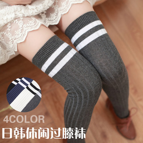 春秋新款甜美棉质打底袜厂家批发二条杠竖条过膝袜日系...