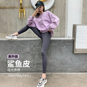 灰色鲨鱼裤打底裤女外穿春款排扣高腰加绒弹力芭比瑜伽...