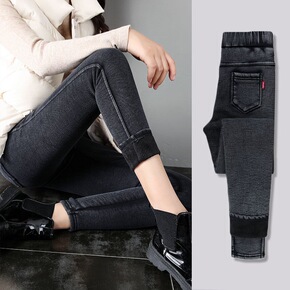 加绒牛仔打底裤女外穿冬季八分矮个子高腰小个子裤子加...