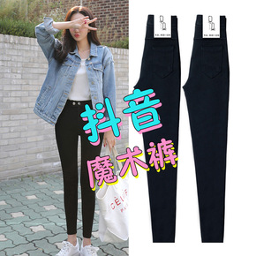 抖音魔术裤女瘦身黑色高腰春夏薄款紧身大码小脚外穿铅...