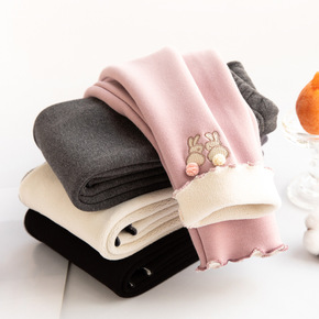 小熊字母印花蝴蝶结2021冬款女童打底裤加厚超柔童...