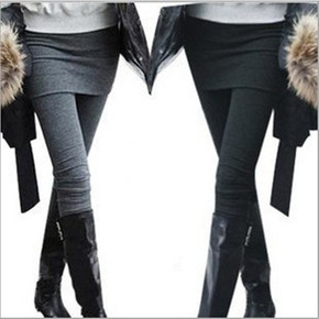 加绒加厚裙裤 韩版时尚包臀假两件打底裤 秋冬 百褶...