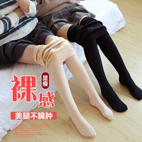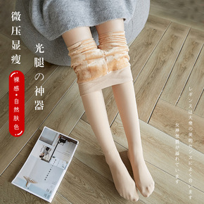 加绒加厚打底裤女外穿秋冬季光腿神器肉色高腰大码连裤...