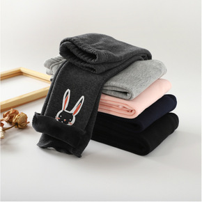 韩版女童加绒笑脸条纹打底裤2021年秋冬季新款弹力...