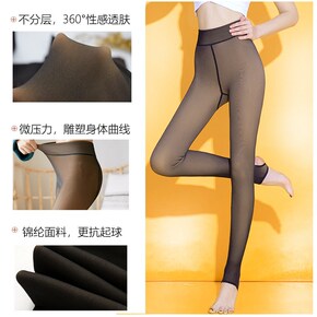 秋冬加绒加厚肉色光腿打底裤 双层任意剪假透肉丝袜裸...