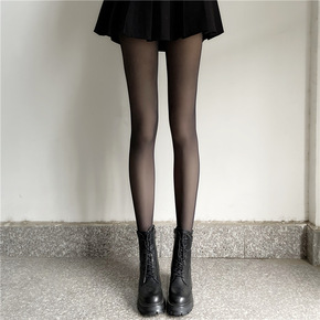 厂家直销设计感拼色打底袜女冬加绒加厚连裤袜纯欲性感...