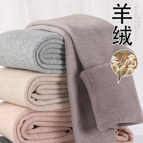 棉竖条秋冬加绒女外穿羊绒裤高腰螺纹打底裤加厚保暖裤...