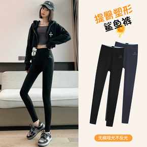 钻石鲨鱼皮打底裤女春秋季新款黑色紧身瑜伽裤薄款瘦腿...