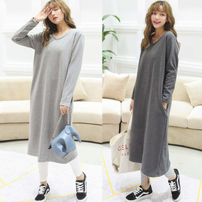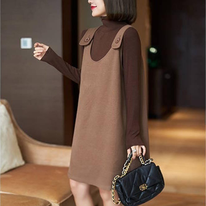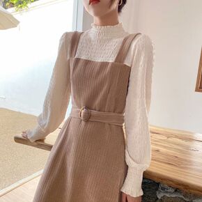 春装新款假两件修身显瘦长袖连衣裙套装秋装性感收腰打...