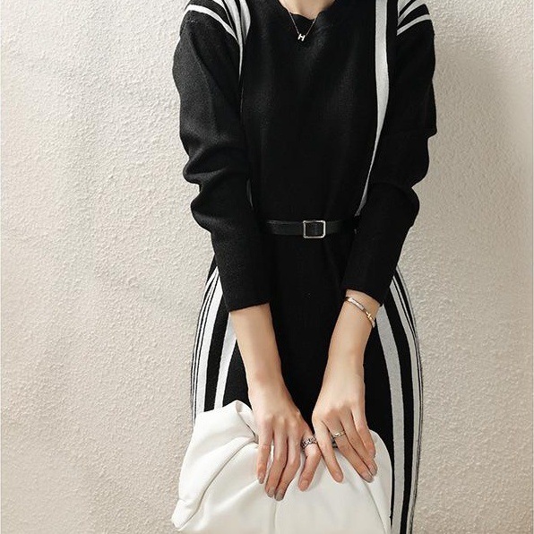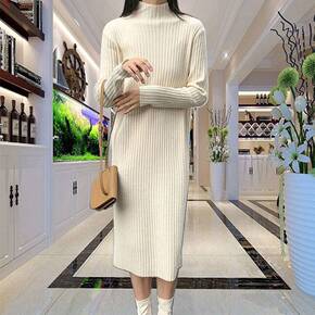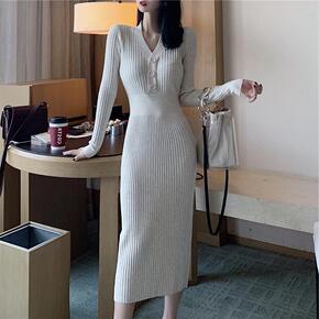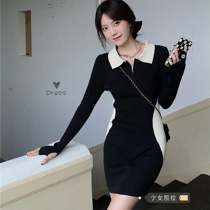 2022早秋冬新款气质修身针织打底连衣裙时尚百搭收...