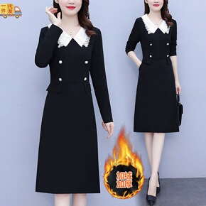 胖mm大码遮肚显瘦2022春秋新款打底裙子娃娃领减...