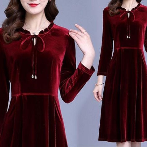 复古宫廷风丝绒连衣裙女秋冬新款显瘦长袖两件套减龄气...