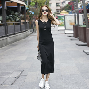 夏装加厚莫代儿背心长裙中长款打底裙韩版大码连衣裙女...
