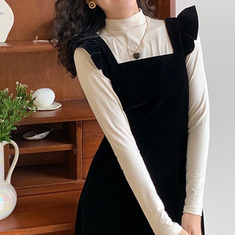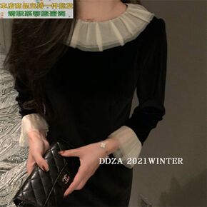 春装2022年新款女气质小黑裙长袖小个子针织内搭打...