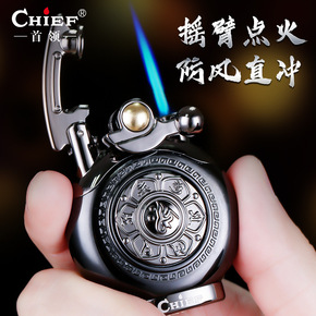 PL176朗声创意金属蓝焰直冲充气防风打火机个性拉...