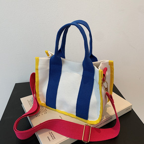 韩国东大门拼接撞色帆布包女2021个性条纹手提托特...