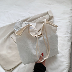 流行大容量帆布托特包2021新款蕾丝腋下单肩女包包...