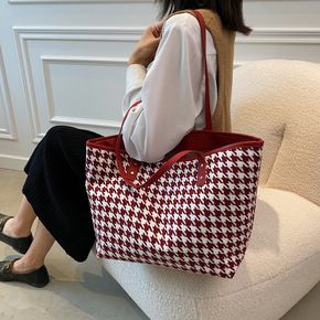腋下大包2021秋冬新款包包几何菱格托特包大容量单...