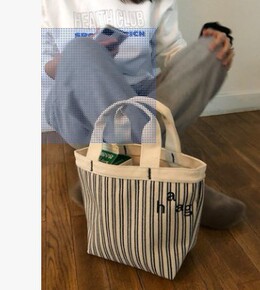 haag慵懒风帆布袋女夏ins韩风小众设计简约条纹...