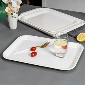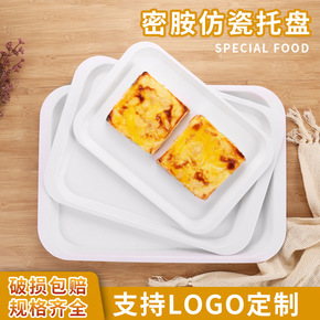 长方形白色托盘塑料欧式水杯小茶盘幼儿园密胺托盘蛋糕...